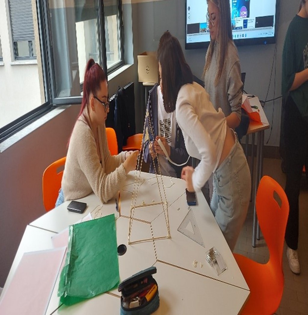 Ξεχωριστή εμπειρία για τους μαθητές, μεταξύ των δραστηριοτήτων στο φορέα υποδοχής, αποτέλεσε η κατασκευή, σε συνεργασία με τους Ιταλούς συμμαθητές τους, του αλεξίπτωτου του Leonardo Da Vinci, ακολουθώντας τις αρχές STEM. Η όλη δράση απέκτησε πολλαπλασιαστική αξία όταν τα δύο γκρουπ, κατά τη διάρκεια της επίσκεψής τους στο Μουσείο Φυσικής Επιστήμης και Τεχνολογίας “Leonardo Da Vinci” στο Μιλάνο, είδαν την αντίστοιχη κατασκευή όπως παρουσιάζεται στα εκθέματα του μουσείου και στα χειρόγραφα του σπουδαίου καλλιτέχνη – εφευρέτη.