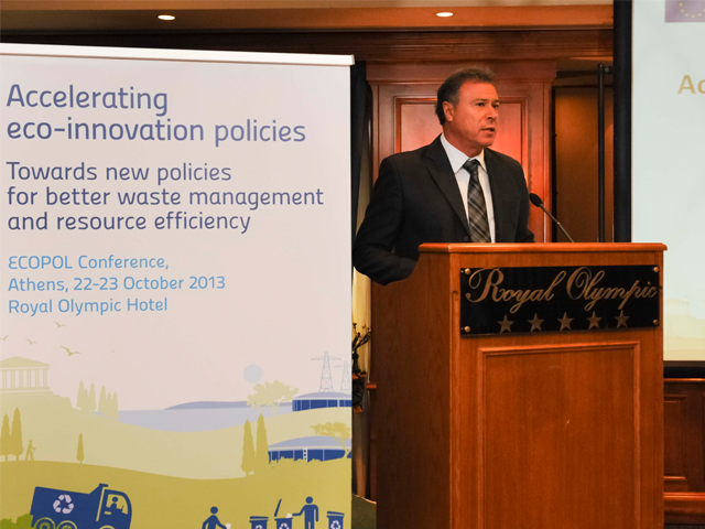 Ο Περιφερειάρχης Αττικής, στην εναρκτήρια ομιλία του, τόνισε τη βαρύτητα του συνεδρίου, καθώς πρόκειται για μια ουσιαστική ευκαιρία διαβούλευσης και ανταλλαγής εμπειρίας και τεχνογνωσίας στον κρίσιμο για τη χώρα μας τομέα της διαχείρισης των αποβλήτων μέσω βιώσιμων και καινοτόμων πρακτικών, ακολουθώντας τις επιταγές της πράσινης οικονομίας: «Ένα ήταν το σημείο εκκίνησης της δουλειάς μας στο Ecopol: πώς να επιταχύνουμε την αποτελεσματική εφαρμογή της πράσινης καινοτομίας σε ευρωπαϊκό επίπεδο και ποιο είναι το είδος των εργαλείων και μέσων πολιτικής για την αποτελεσματικότερη υποστήριξή της».