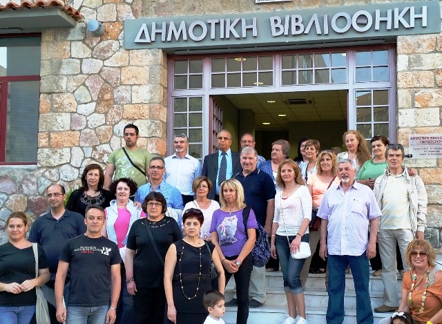 Ακολούθησε μια περιήγηση – ξενάγηση στους χώρους του «Πέτρινου», που τα τελευταία χρόνια έχει ανακαινιστεί και φιλοξενεί με επιτυχία τη Δημοτική Βιβλιοθήκη – Πανεπιστήμιο και η συνάντηση έκλεισε με ένα μουσικό αφιέρωμα στη Βίκυ Μοσχολιού στην αίθουσα της Μουσικής Βιβλιοθήκης «Νάνα Μούσχουρη».