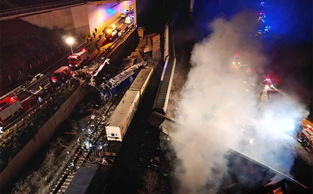 Η μετωπική σύγκρουση μεταξύ δύο τρένων στη γραμμή Αθήνα – Θεσσαλονίκη, που προκλήθηκε από συνδυασμό βλάβης στα σήματα και ανθρώπινου λάθους, προκάλεσε τον θάνατο 57 επιβατών – πολλοί από τους οποίους ήταν φοιτητές που επέστρεφαν στα πανεπιστήμιά τους στη Θεσσαλονίκη. Η έρευνα αποκάλυψε προβλήματα που κυμαίνονταν από ανεπαρκώς εκπαιδευμένο προσωπικό έως κακοσυντηρημένο εξοπλισμό.
