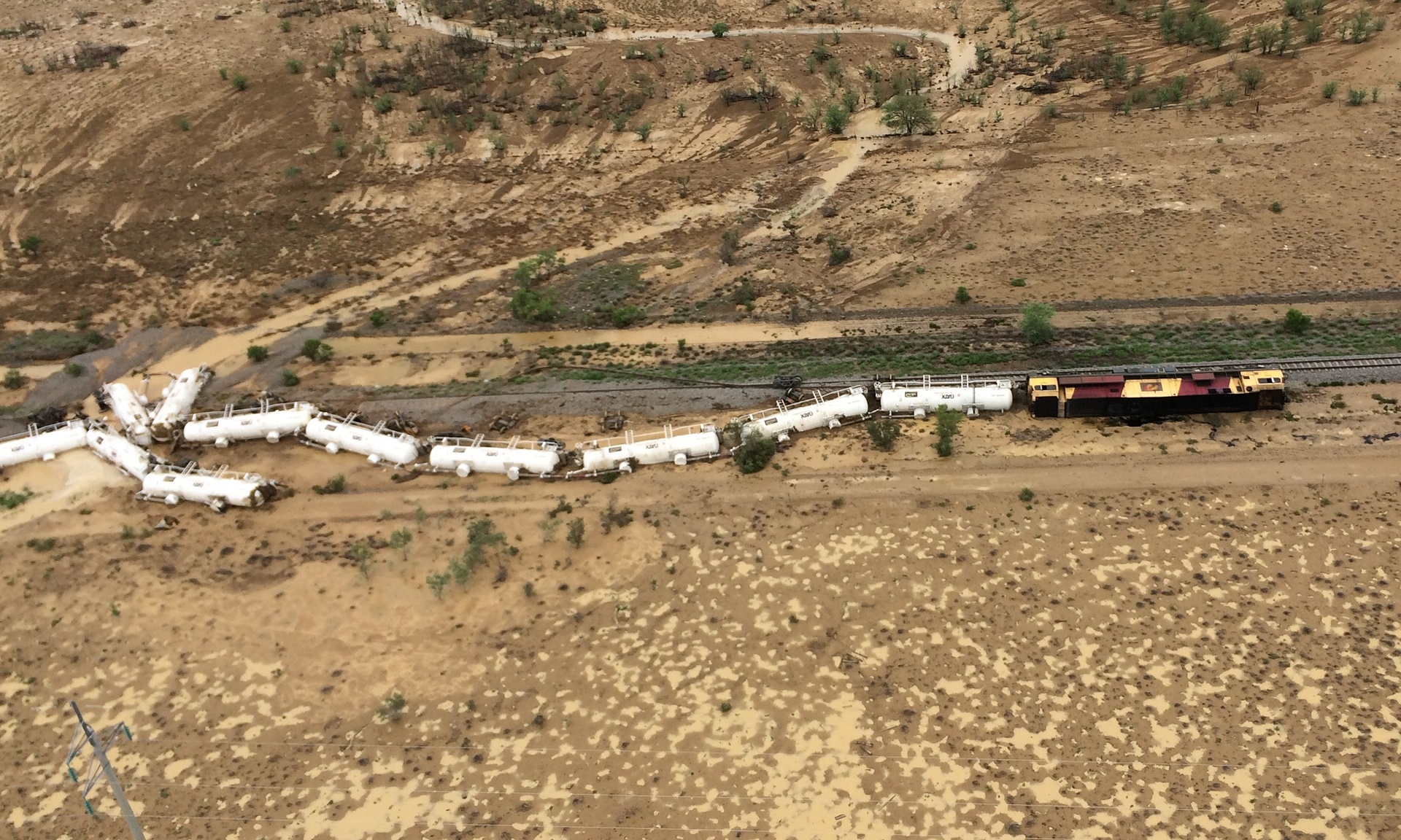 Τρένο που μετέφερε 200.000 λίτρα θειικού οξέος εκτροχιάστηκε χθες σε απομακρυσμένη περιοχή, στην πολιτεία Κουίνσλαντ της Αυστραλίας, που είχε πληγεί προηγουμένως από ισχυρές βροχοπτώσεις και πλημμύρες.