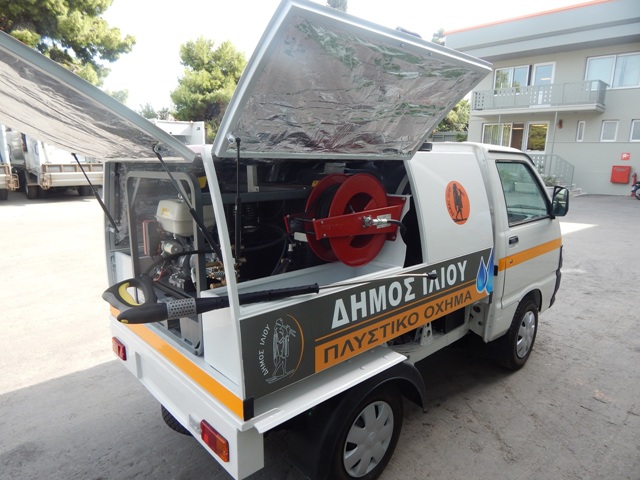 Πρόκειται για ένα ευέλικτο όχημα με πολύ μεγάλες επιδόσεις και δυνατότητες, με δεξαμενή νερού χωρητικότητας 400lit, ηχομονωμένο πλυστικό συγκρότημα, αυτόνομο σύστημα εκτόξευσης νερού με πιστόλι χειρός, το οποίο θα συμβάλλει στην αισθητική και λειτουργική βελτίωση της πόλης.