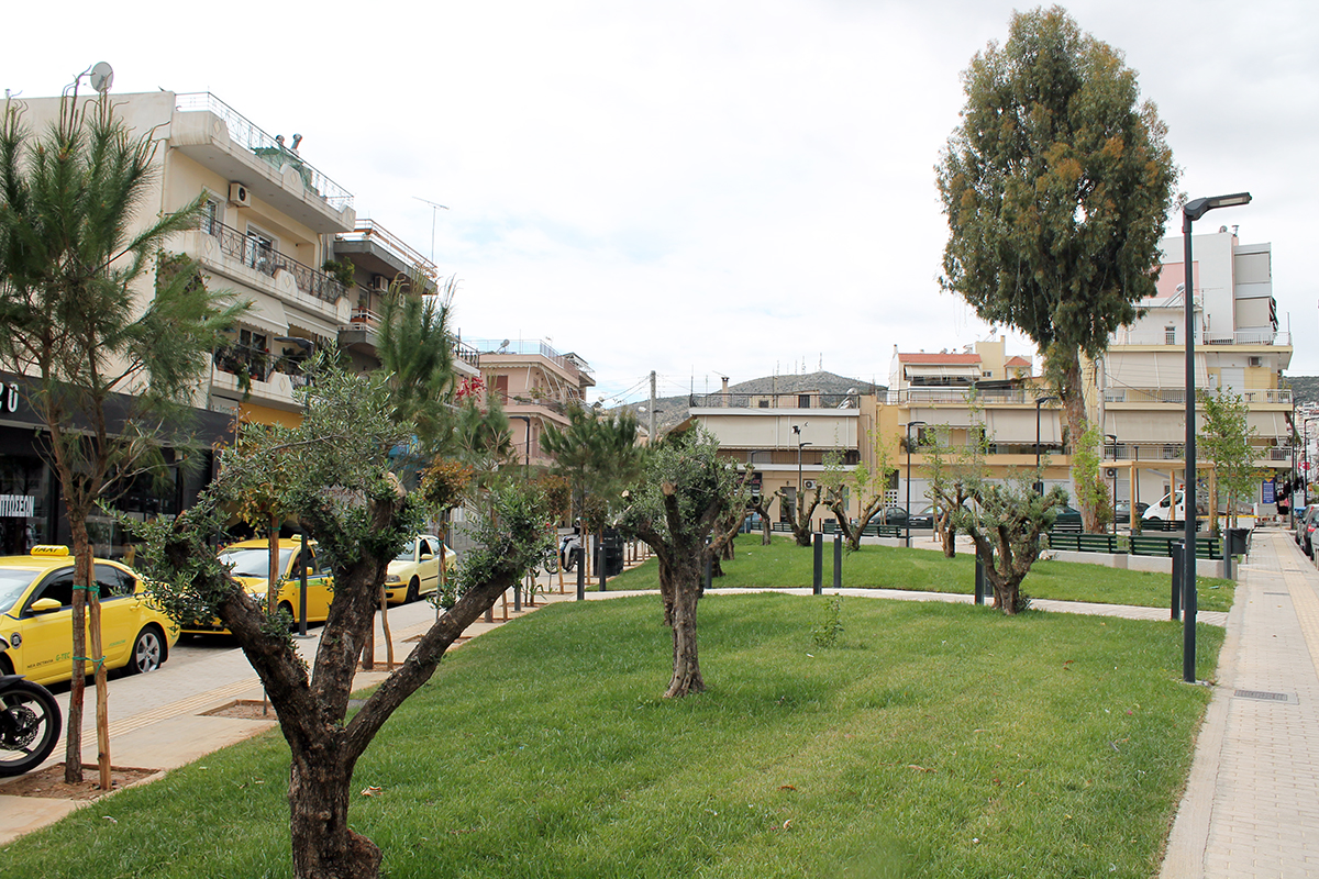 Στα θετικά των χώρων πρασίνου παρατηρήσαμε τα εκατοντάδες δέντρα που έχουν φυτευτεί και σε εύλογο χρονικό διάστημα θα αναπτυχθούν παρέχοντας ομορφιά και ένα μοναδικό φυσικό περιβάλλον. Ακόμα είναι εμφανής η τοποθέτηση πολλών καθιστικών που βοηθούν στη συγκέντρωση περισσότερου κόσμου στις πλατείες και στη Χωράφα.