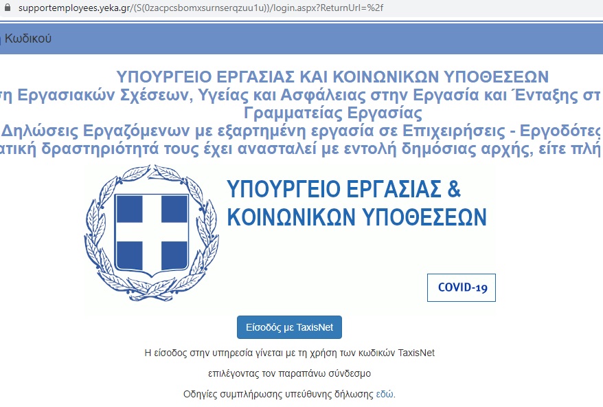 Υπενθυμίζεται ότι στην υπεύθυνη δήλωση, που καλούνται να υποβάλουν οι εργαζόμενοι επιχειρήσεων, των οποίων είτε η επιχειρηματική δραστηριότητά τους έχει ανασταλεί, με εντολή δημόσιας αρχής είτε πλήττονται σημαντικά, βάσει των οριζομένων από το υπουργείο Οικονομικών Κωδικών Αριθμών Δραστηριότητας (ΚΑΔ), λόγω του κορονοϊού, συμπεριλαμβάνονται, εκτός των προσωπικών τους στοιχείων και του αριθμού πρωτοκόλλου καταχώρισης της υπεύθυνης δήλωσης του εργοδότη στο Πληροφοριακό Σύστημα «ΕΡΓΑΝΗ», τα οποία αντλούνται αυτόματα από το Π.Σ. «ΕΡΓΑΝΗ» και τα στοιχεία του προσωπικού τραπεζικού λογαριασμού τους (ΙΒΑΝ).