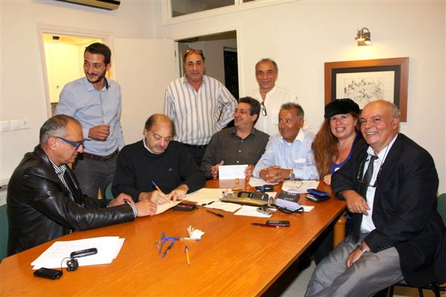 Ο ραδιοερασιτέχνης Μάκης Μαντζαρίδης SV1IZR απαθανάτισε τη στιγμή της υπογραφής. Στη φωτογραφία διακρίνονται (από αριστερά προς τα δεξιά καθιστοί και όρθιοι συνεχόμενα) οι: Συμβολαιογράφος κ. Κωφόπουλος, συμβολαιογράφος κ. Αλέξανδρος Καρανταλής, Μανώλης Δαρκαδάκης SV1IW (Πρόεδρος ΕΕΡ), κ. Χρήστος Βενέτας (ο πωλητής), Σωτήριος Βανικιώτης SV1HER (Γεν. Γραμματέας ΕΕΡ), Ιωάννης Διαλεκτός SV1GYG (μέλος του Δ.Σ. της ΕΕΡ), Ιωάννης Τράϊκος SV1GE (αντιπρόεδρος ΕΕΡ) , κα Αθηνά Δαφνομήλη (Κοινοτική Σύμβουλος Α’ Περιστερίου), κ. Σταμάτης Πεπόνας (δικηγόρος της ΕΕΡ).