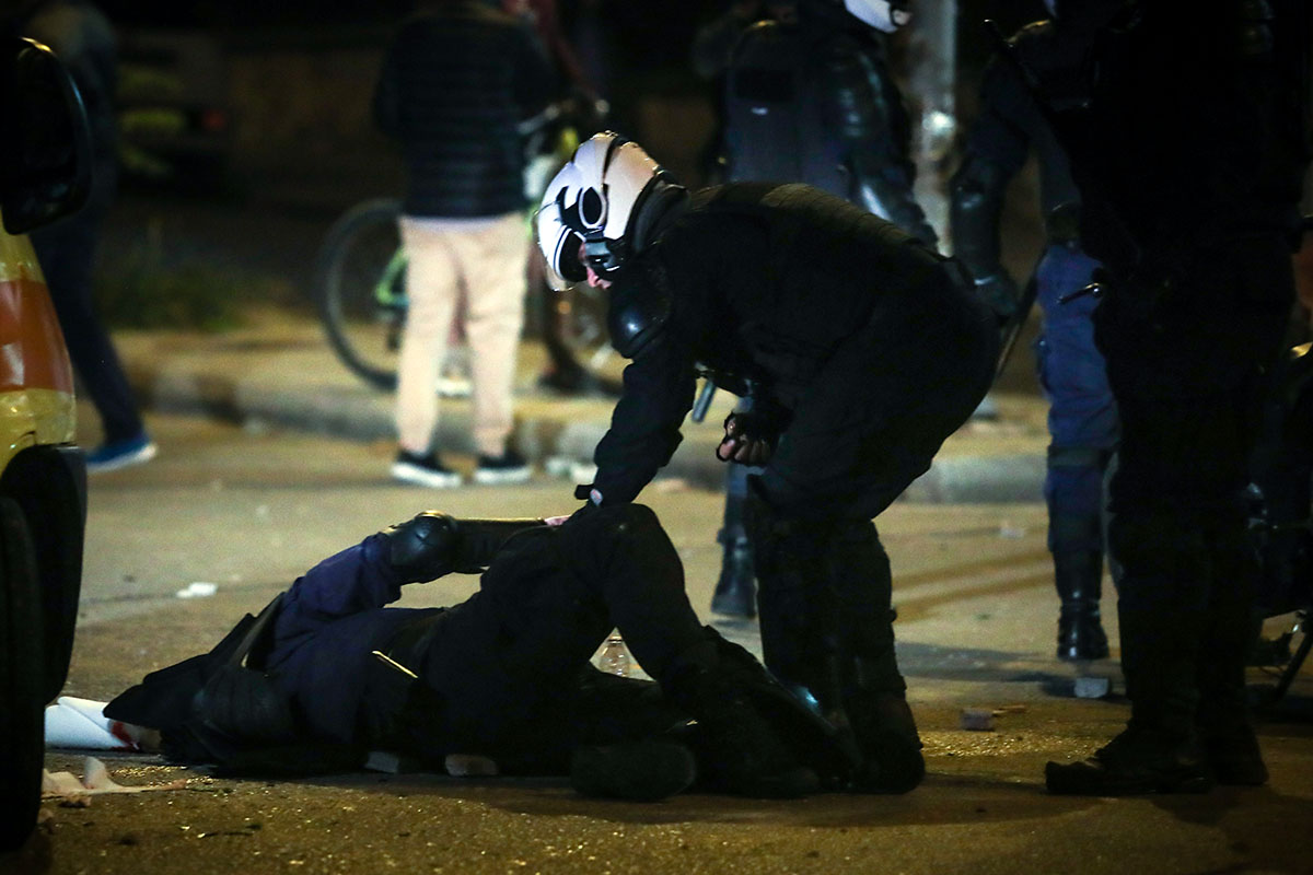 Κουκουλοφόροι επιτέθηκαν με μολότοφ στο αστυνομικό τμήμα και σε αστυνομικούς, καθώς και σε δημοσιογράφους και φωτορεπόρτερ.
