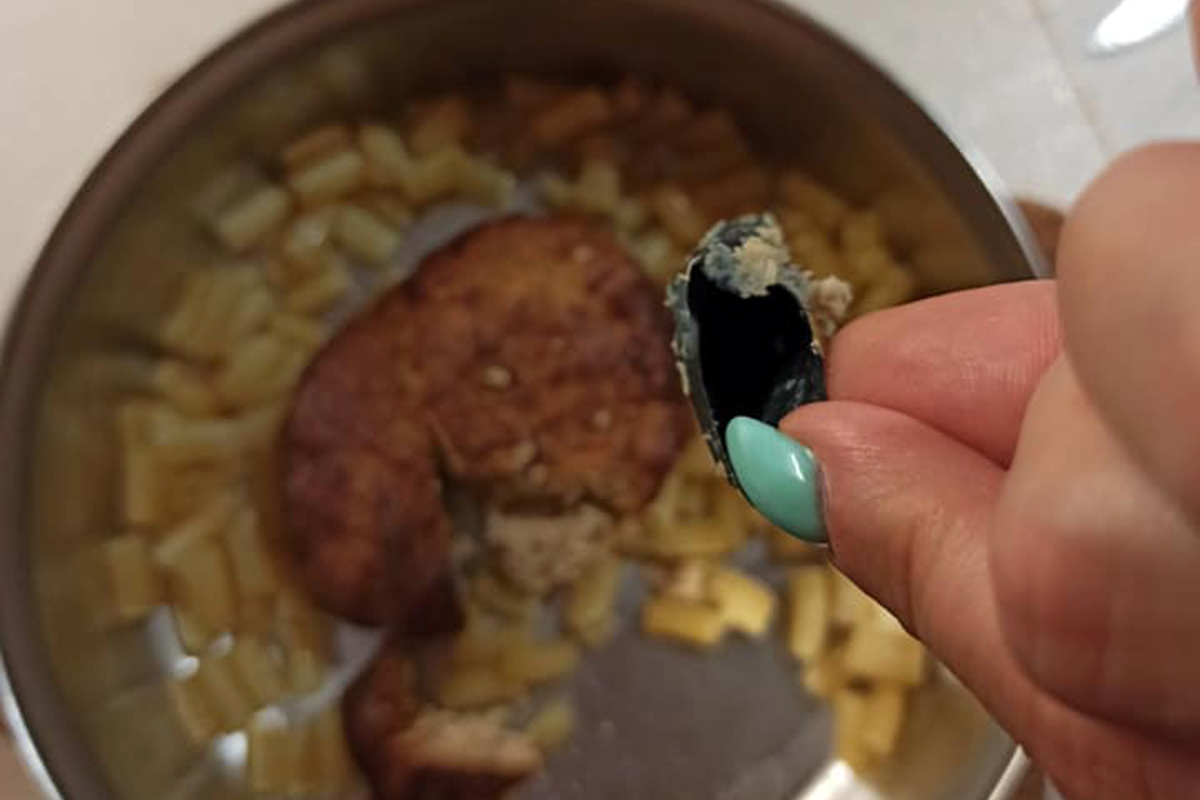 Το γεύμα ήταν μπιφτέκι κοτόπουλο με ζυμαρικό και όταν η μητέρα το έβαλε σε ταψάκι για να το ζεστάνει και στη συνέχεια το έκοψε, βρήκε το κομμάτι πλαστικού γαντιού.