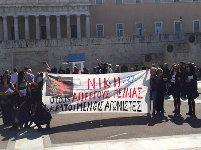 Στο μνημείο του Άγνωστου Στρατιώτη έχουν συγκεντρωθεί φίλοι και συγγενείς των κρατούμενων απεργών πείνας.