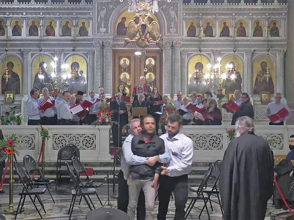Ένας αλλοδαπός αραβικής καταγωγής εισέβαλε στην εκκλησία, κατευθύνθηκε προς το μικρόφωνο και άρχισε να φωνάζει, κάτι που ουδείς μπόρεσε να καταλάβει.