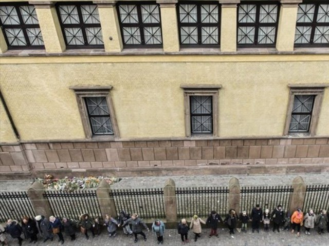 «Αλυσίδα ειρήνης» γύρω από τη συναγωγή της Κοπεγχάγης σχημάτισαν σήμερα περίπου χίλιοι άνθρωποι, έναν μήνα μετά την αιματηρή επίθεση στο σημείο που προκάλεσε το θάνατο ενός 37χρονου Δανού Εβραίου.