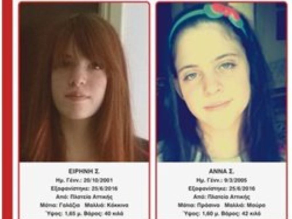 Πρόκειται για την Ειρήνη Σ. 14 ετών και την Άννα Σ. 11 ετών. Η Ειρήνη έχει ύψος 1,65, ζυγίζει 40 κιλά, έχει κόκκινα μαλλιά και γαλάζια μάτια. Η Άννα έχει ύψος 1,60, ζυγίζει 42 κιλά, έχει μαύρα μαλλιά και πράσινα μάτια.