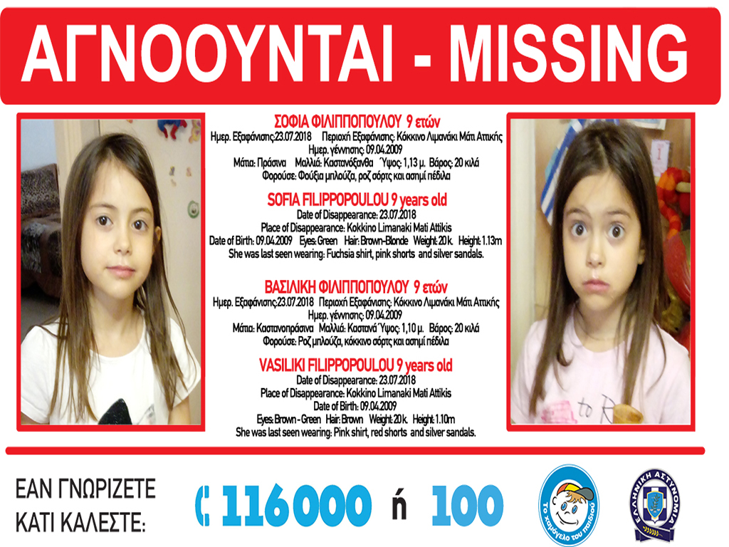 Σημειώνεται πως τα ίχνη των κοριτσιών χάθηκαν μετά τις φονικές πυρκαγιές στην Αττική, στην περιοχή της Ραφήνας.