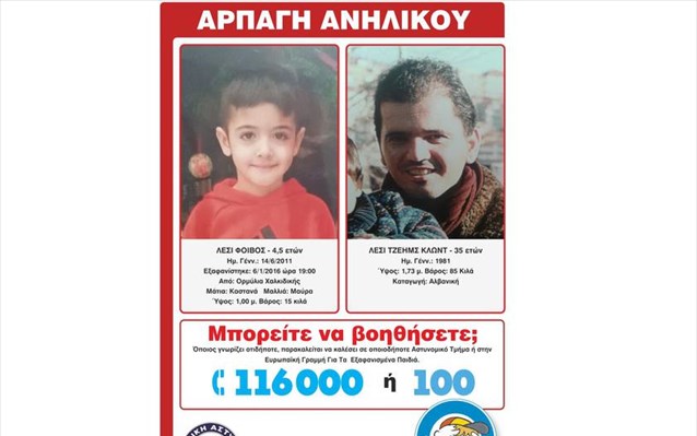Δελτίο Τύπου Amber Alert εξέδωσε το Χαμόγελο του Παιδιού για το αγοράκι 4,5 ετών, το οποίο απήγαγε ο πατέρας του, αφού πρώτα σκότωσε την εν διαστάσει σύζυγό του στην Ορμύλια Χαλκιδικής.