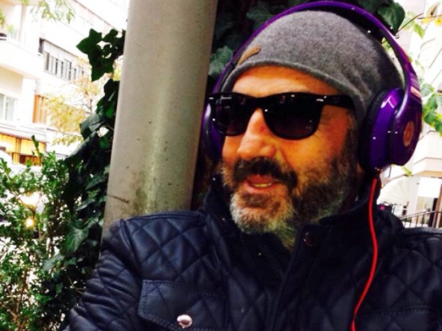 Με μούσι εβδομάδων,γυαλιά ηλίου, ντυμένος όπως προστάζει η εποχή, με μπουφάν και σκουφάκι αλλά και με μεγάλα ακουστικά σε trendy μωβ και κόκκινο καλώδιο, ο Γιώργος Βουλγαράκης ποζάρει χαμογελαστός.
