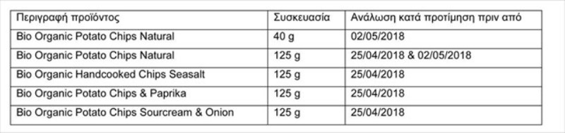 Πρόκειται για τα προϊόντα με την εμπορική ονομασία «Trafo», που παρασκευάστηκαν από την ολλανδική εταιρεία «FZ Organic Food» και έχουν διατεθεί με τις ακόλουθες ημερομηνίες ανάλωσης και τύπους συσκευασιών: