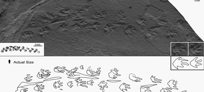 Μία σειρά από απολιθωμένες πατημασιές που ανακαλύφθηκαν στην περιοχή Τζόγκινς στον Καναδά, θεωρείται η πιο μικρή που έχει εντοπιστεί ποτέ στον κόσμο και ανήκει σε σπονδυλωτό ζώο.
