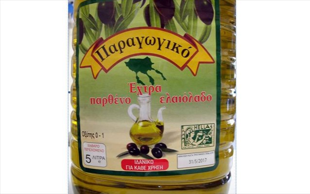 Την ανάκληση ελαιολάδου ως μη κανονικού – μη ασφαλούς ζήτησε ο ΕΦΕΤ, αφού μετά από καταγγελία διαπίστωσε ότι το προϊόν το οποίο πωλείται ως «Έχτρα Παρθένο Ελαιόλαδο», με την εμπορική ονομασία «Παραγωγικό», σε πλαστική συσκευασία των 5 λίτρων και ημερομηνία λήξης 31-5-2017, το οποίο διακινείται από την εταιρία – κρεοπωλείο με την επωνυμία «ΡΩΣΙΟΣ ΔΗΜΗΤΡΙΟΣ», με έδρα την Κρύα Βρύση Πέλλας, περιείχε σπορέλαια, τεχνητά κεχρωσμένα με τη χρωστική αννάτο.