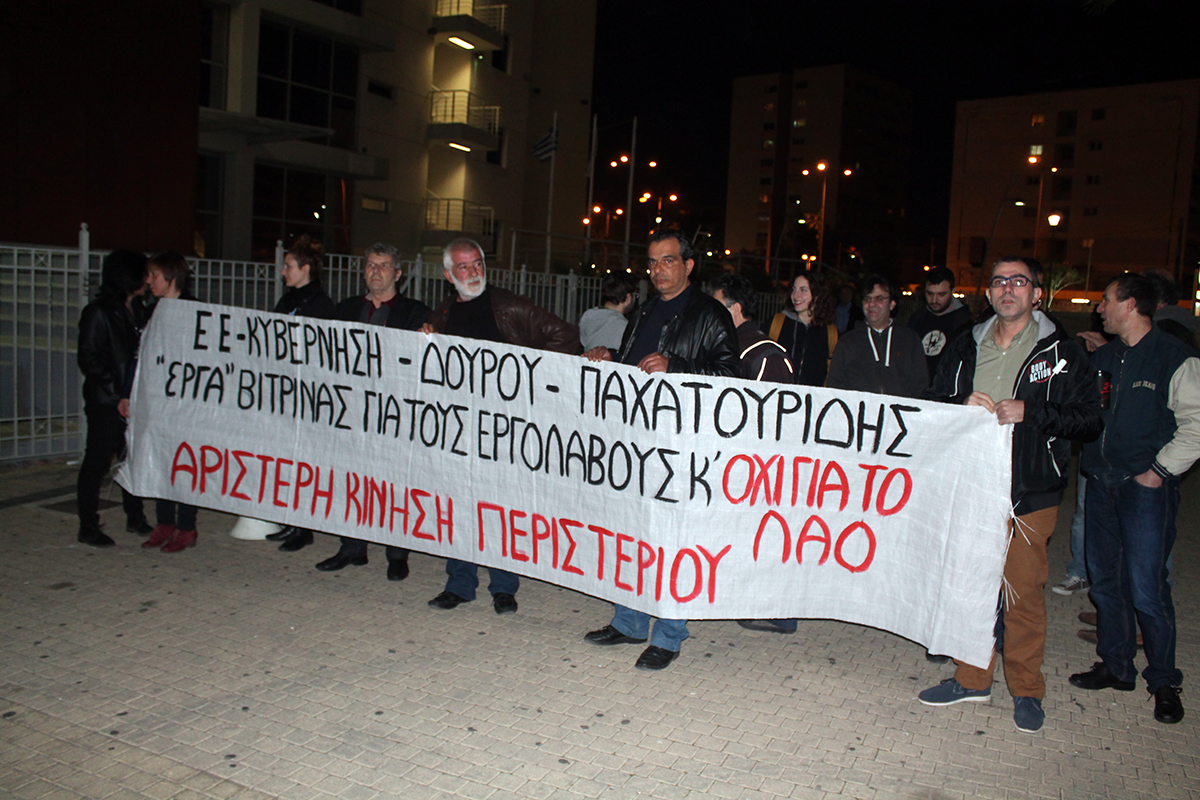 Παράσταση διαμαρτυρίας για τα έργα που γίνονται από την Περιφέρεια Αττικής στο Δήμο Περιστερίου έκανε η δημοτική παράταξη “Αριστερή Κίνηση Περιστερίου” πριν από την έναρξη της εκδήλωσης της Αντιπεριφέρειας Δυτικού Τομέα Αθηνών στο Δημαρχείο Περιστερίου.