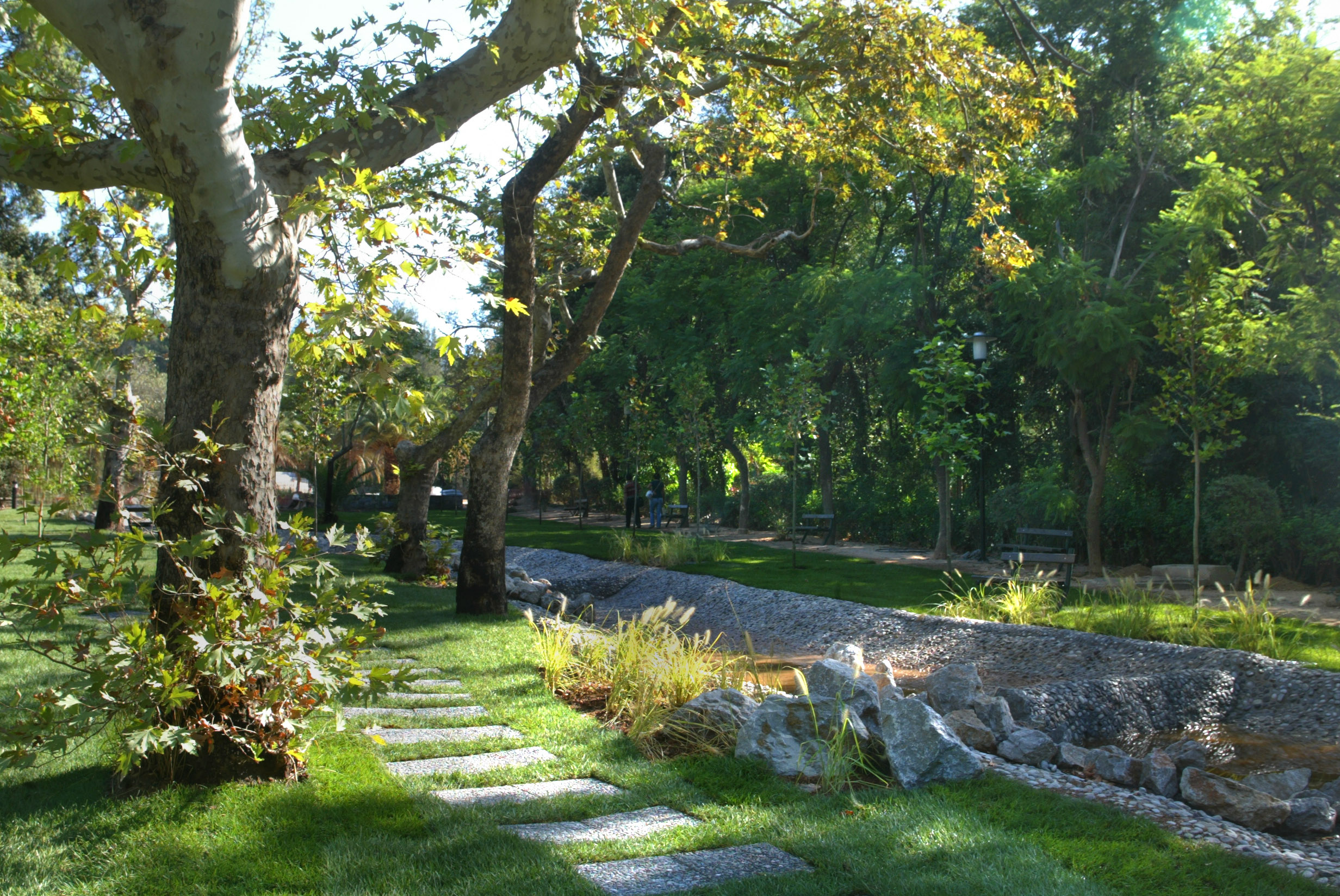 Φυτεύτηκαν 1.200 δέντρα, 50.000 ανθόφυτα, 7.500 θάμνοι και 2.500 τριανταφυλλιές, ενώ προστέθηκαν 9 στρέμματα χλοοτάπητα και 8 στρέμματα με φυτά εδαφοκάλυψης. Ξηλώθηκαν 22.650 τ.μ. ασφάλτου στις παλιές διαδρομές και στη θέση της μπήκε χώμα, ενώ τοποθετήθηκαν παράλληλα 8.800 τ.μ. μαρμαροκυβόλιθοι και 3.800 τ.μ. γρανιτοκυβόλιθοι.