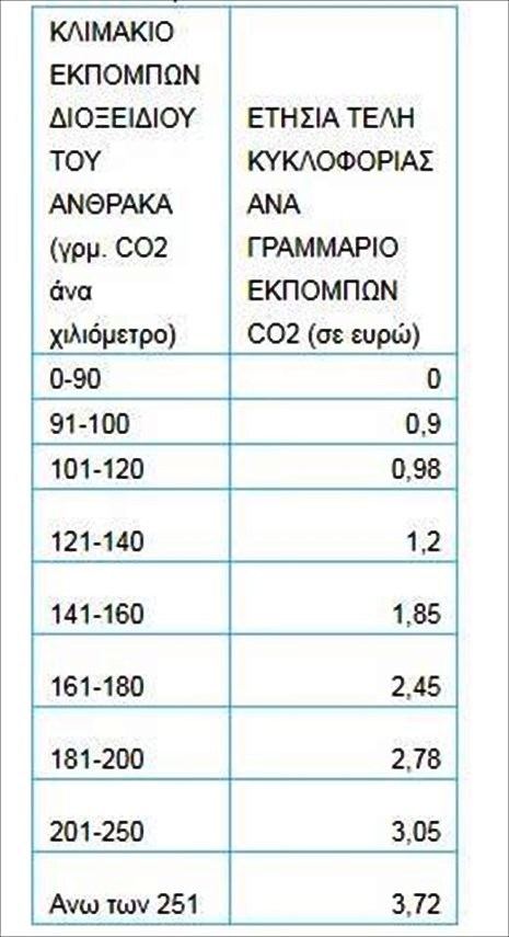 1. Στα οχήματα με πρώτη ταξινόμηση στην Ελλάδα έως το 2000, ισχύουν οι ακόλουθες επιβαρύνσεις: