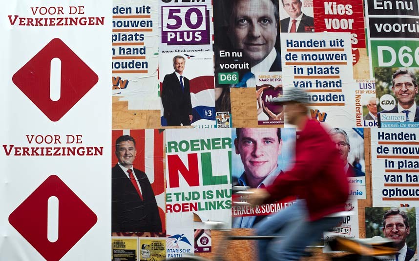 Σύμφωνα με τις τελευταίες δημοσκοπήσεις, οι Φιλελεύθεροι του απερχόμενου πρωθυπουργού, Μαρκ Ρούτε και οι Εργατικοί του Ντίεντερικ Σάμσον αναμένεται να κερδίσουν από 35 έδρες το κάθε κόμμα σε σύνολο 150 του ολλανδικού κοινοβουλίου.