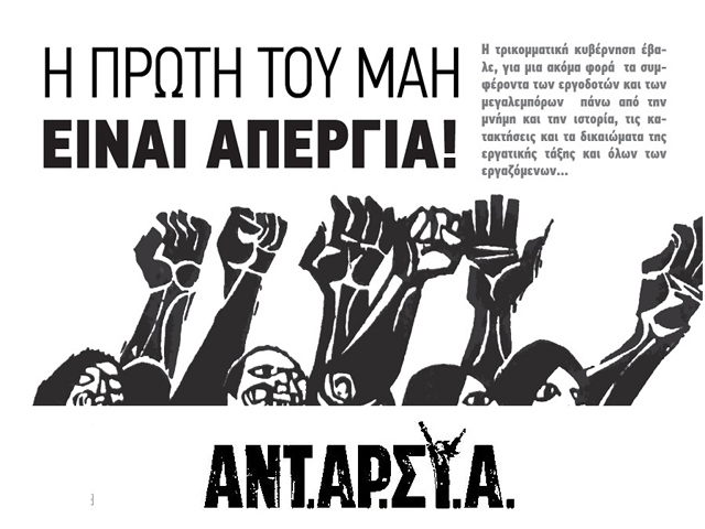 ΑΝΤΑΡΣΥΑ: Η Πρώτη του Μάη είναι Απεργία !