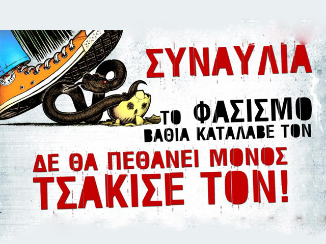 Η Οργάνωση Περιοχής Αττικής της ΚΝΕ διοργανώνει αντιφασιστική συναυλία στο Περιστέρι, την Παρασκευή 20 Ιούνη, στις 20.00, στην πλατεία Δημαρχείου, με τους Afaza, Μέγα, Φώτη Ανδρικόπουλο και με μαθητικά-νεανικά συγκροτήματα.