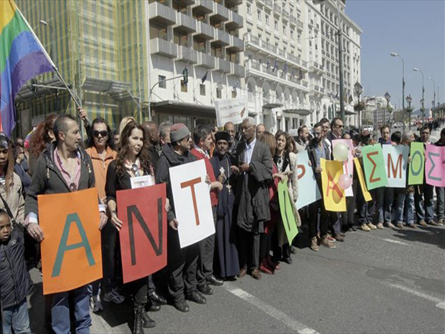 Μέλη του δικτύου για την προστασία των δικαιωμάτων του παιδιού πραγματοποιούν την ίδια ώρα πορεία κατά των διακρίσεων, με σύνθημα «πρέπει να είσαι ο εαυτός σου και όχι αυτό που θέλουν οι άλλοι», από το μνημείο του Άγνωστου Στρατιώτη μέχρι το Μέγαρο Μαξίμου.