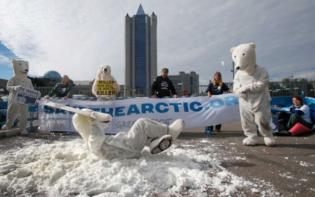 Μέλη της περιβαλλοντικής οργάνωσης Greenpeace συγκεντρώθηκαν την Τετάρτη έξω από τα κεντρικά γραφεία της Gazprom, προκειμένου να εκφράσουν τη διαμαρτυρία τους για τα σχέδια του ρωσικού πετρελαϊκού κολοσσού να προχωρήσει σε γεωτρήσεις στην περιοχή της Αρκτικής.