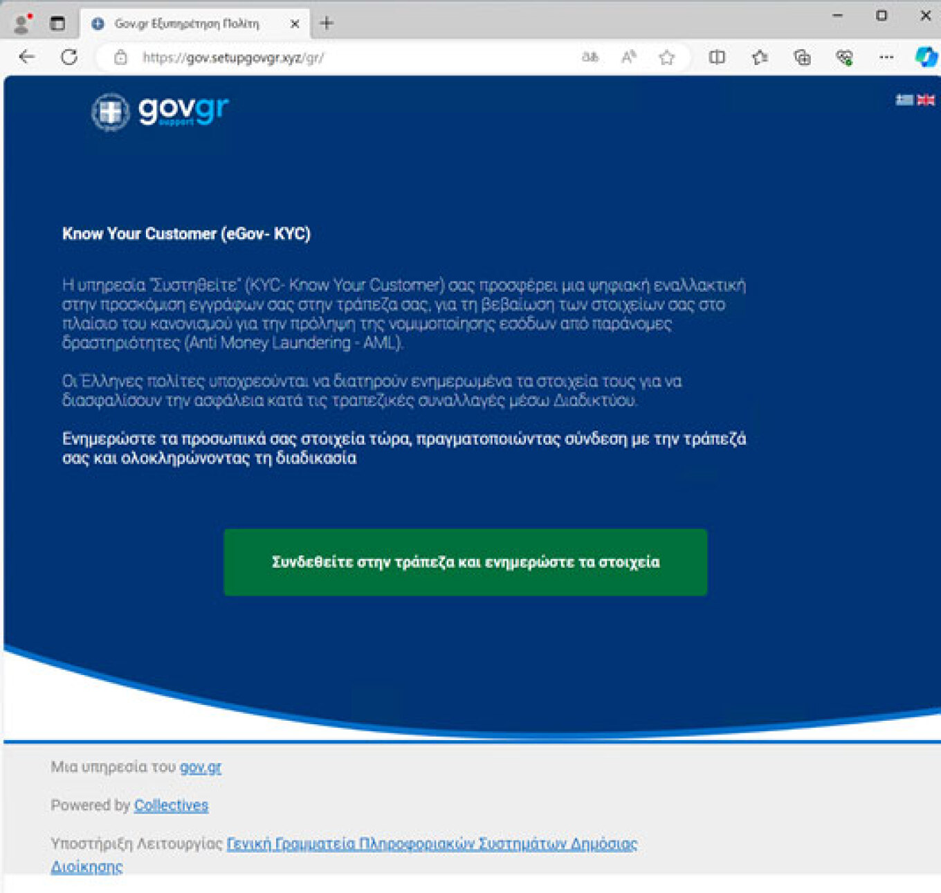 Η ιστοσελίδα στην οποία οδηγούν οι απατεώνες αν και θυμίζει Gov.gr, στην μπάρα με την ηλεκτρονική διεύθυνση γράφει «gov.setupgovgr.xyz/gr/», στοιχείο που θα πρέπει να χτυπήσει καμπανάκια και γρήγορα όποιος την εντοπίσει θα πρέπει να κλείσει το παράθυρο που έχει ανοίξει.