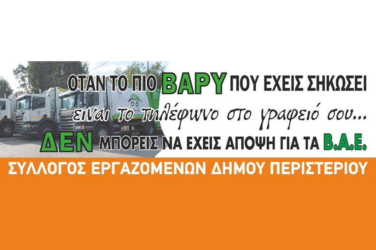 Η απάντηση των εργαζομένων στην Τοπική Αυτοδιοίκηση είναι μία: Κάτω τα χέρια από τα ΒΑΕ. Δεν πρόκειται να δεχθούμε καμία περικοπή του Επιδόματος Επικίνδυνης και Ανθυγιεινής Εργασίας. Πόσο μάλλον, όταν οι συνθήκες εργασίας είναι άθλιες, παρατηρείται έλλειψη ακόμη και των στοιχειωδών μέσων όσον αφορά στην υγιεινή και ασφάλεια των εργαζομένων, δεν παρέχονται τα είδη ατομικής προστασίας, ο μηχανολογικός εξοπλισμός είναι απαρχαιωμένος και υπάρχουν σοβαρές ελλείψεις σε μόνιμο προσωπικό.