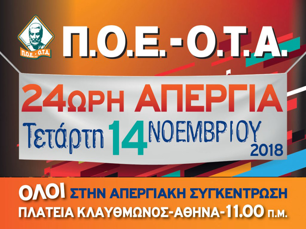 Απεργούν την Τετάρτη 14 Νοεμβρίου οι εργαζόμενοι στην Τοπική Αυτοδιοίκηση της χώρας, μέλη της ΠΟΕ-ΟΤΑ.