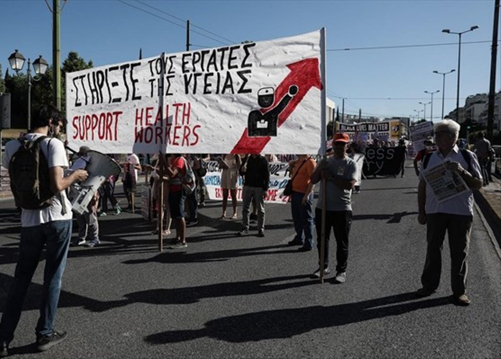 Οι υγειονομικοί συγκεντρώθηκαν στην πλατεία Μαβίλη στις 8:30 π.μ. και ξεκίνησαν πορεία προς το υπουργείο Υγείας.