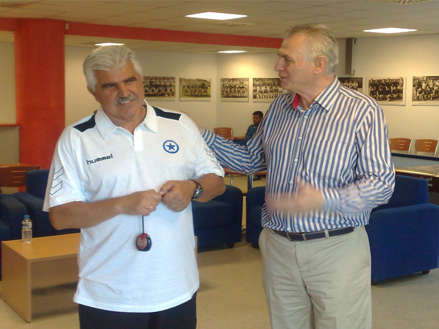 Συνομίλησε με τους παίκτες, το προπονητικό τιμ και τον πρόεδρο Γ. Σπανό ενώ δεν παρέλειψε να ευχηθεί στην ομάδα τα καλύτερα για Ελλάδα και Ευρώπη.
