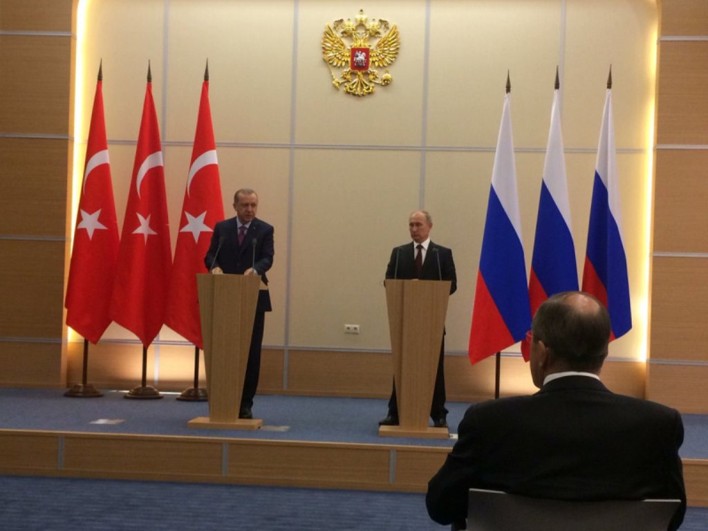 Ο Βλάντιμιρ Πούτιν υποδέχτηκε τον Ταγίπ Ερντογάν λέγοντας: «Πράγματι είμαστε πολύ κοντά, όπως είπατε, μία ώρα και κάτι διαδρομή». Μόσχα και Άγκυρα επιχείρησαν αυτή τη φορά να συντονίσουν τα ρολόγια τους και να κάνουν «επιθεώρηση των διμερών σχέσεων», όπως ανέφερε ο εκπρόσωπος του Ρώσου προέδρου Ντμίτρι Πεσκόφ.