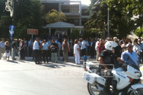 Μία ομάδα από τους συγκεντρωμένους στο μνημείο φώναξαν συνθήματα κατά του Δημάρχου Χορτιάτη Πυλαίας Ι. Καϊτετζίδη, κατά του Υπουργού Μακεδονίας Θράκης, Θ. Καράογλου και κατά του βουλευτή του ΠΑΣΟΚ Β. Γερανίδη που παρευρίσκονται στην τελετή.