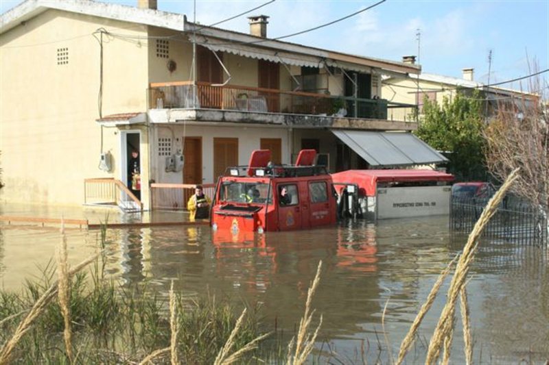 Σωστικά συνεργεία απεγκλώβισαν οικογένειες στις περιοχές Λαμπέτι και Καρούτες, ενώ κινδύνεψε βρέφος στη Σαλμώνη, όταν υπερχείλισε ο ποταμός Ενιπέας.