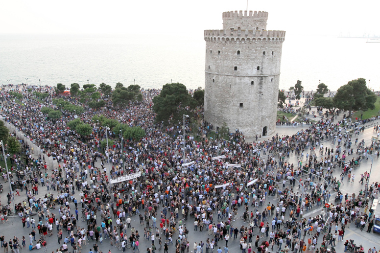 Σε ανακοίνωση που ανήρτησαν στην ιστοσελίδα τους, οι «Αγανακτισμένοι» της Θεσσαλονίκης, ανέφεραν: «αν δήθεν το πρόβλημα είναι οι σκηνές τότε τις αποσύρουμε κρατώντας την υποδομή (γραμματεία, πρώτες βοήθειες και υλικοτεχνική υποστήριξη). Διατηρούμε αδιαπραγμάτευτα τον πολιτικό χαρακτήρα του κινήματός μας. Δεν θα σας δώσουμε καμία ευκαιρία να συκοφαντήσετε το κίνημά μας».