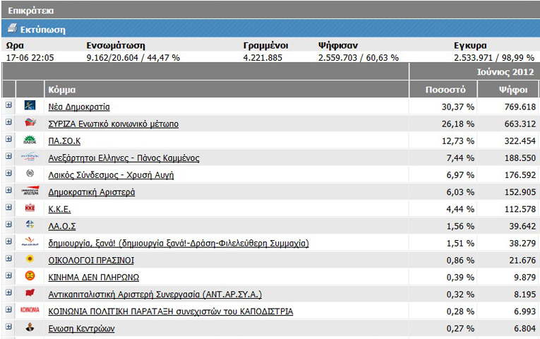 Απότέλεσμα Βουλευτικών Εκλογών 2012 (live)