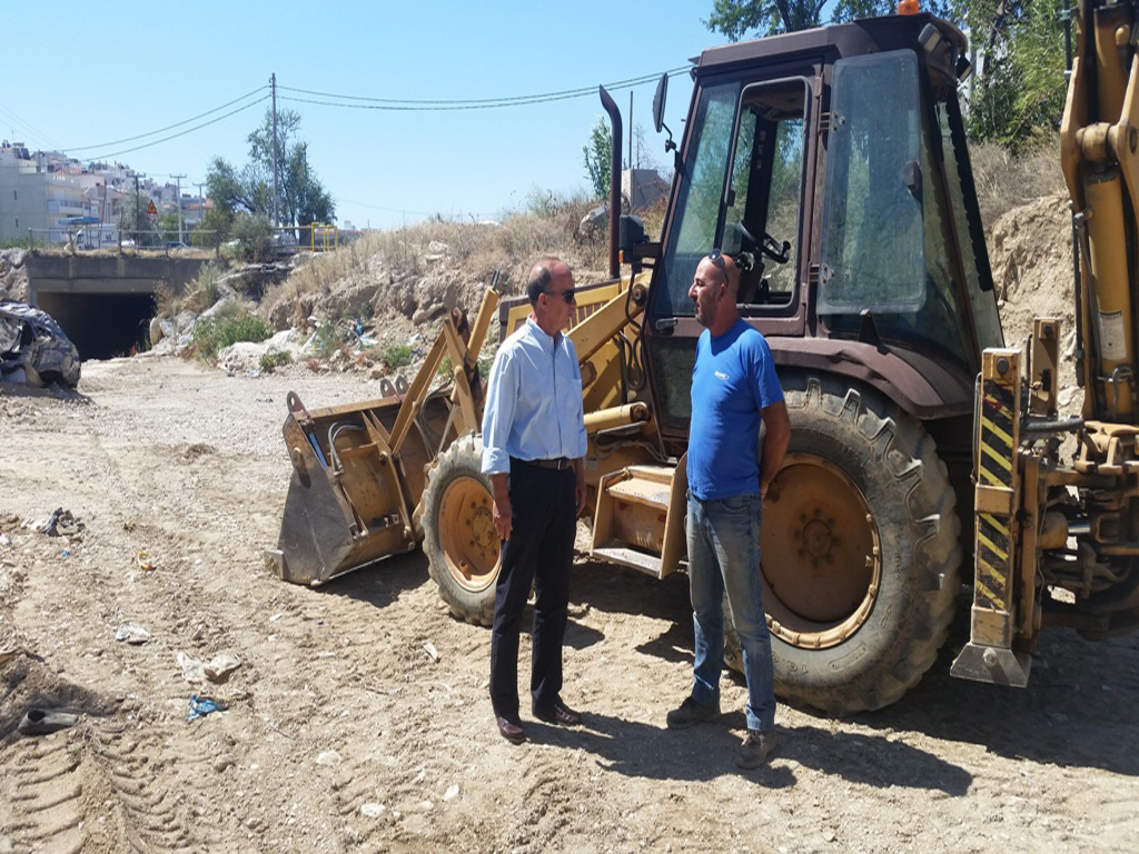 Τα έργα καθαρισμού και διευθέτησης της κοίτης του ρέματος ξεκίνησαν την Παρασκευή 25 Αυγούστου και τα επόπτευσε με επίσκεψή του την ίδια μέρα ο Αντιπεριφερειάρχης.