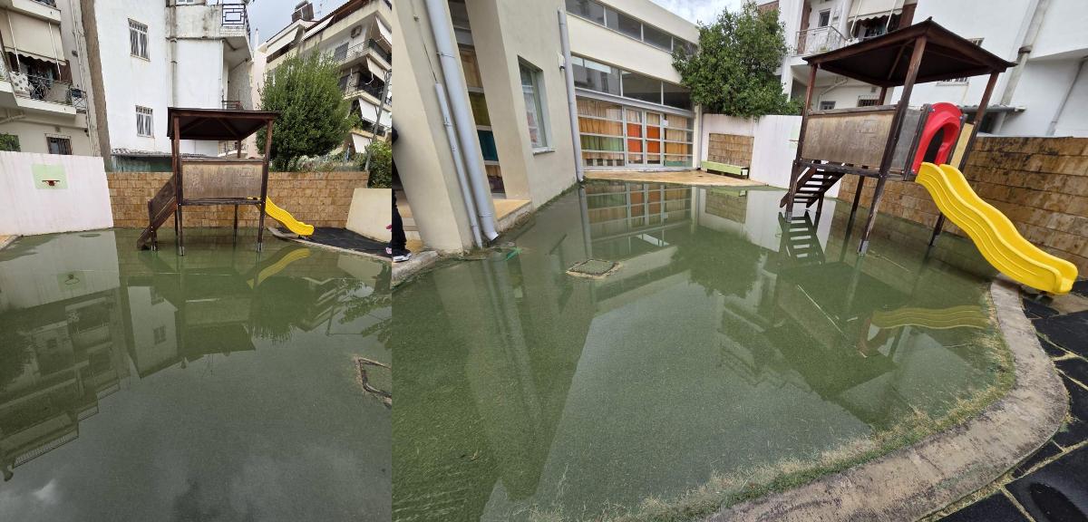Όπως συμβαίνει μετά από κάθε βροχή, έτσι και σήμερα, το προαύλιο του 26ου Νηπιαγωγείου Περιστερίου μετατράπηκε σε λίμνη. Αντί για έναν ασφαλή χώρο παιχνιδιού και δημιουργικής απασχόλησης, τα παιδιά και οι εκπαιδευτικοί βρίσκονται αντιμέτωποι με μια επικίνδυνη και ανθυγιεινή κατάσταση. Δεν πρόκειται για «ακραίο καιρικό φαινόμενο», αλλά για μια επαναλαμβανόμενη και απαράδεκτη πραγματικότητα, που θα έπρεπε να έχει αντιμετωπιστεί εδώ και χρόνια με στοιχειώδεις υποδομές απορροής υδάτων.