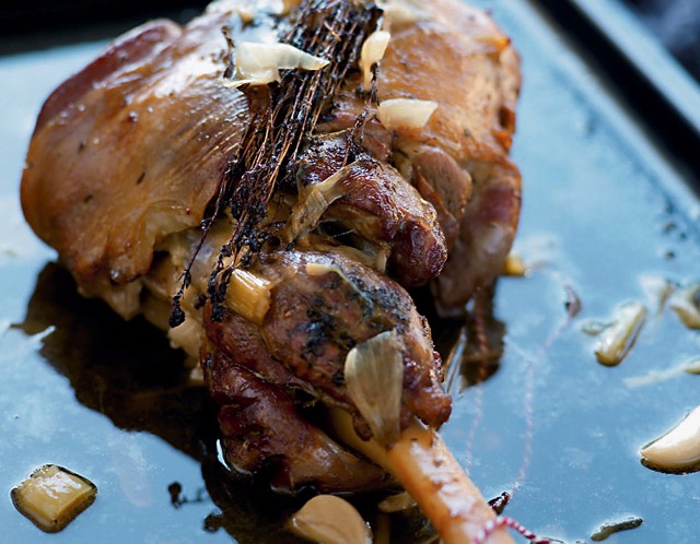 Μπορείτε να προσθέσετε πατάτες γύρω από το μπούτι, ενώ στο τέλος του ψησίματος, σουρώστε την σάλτσα και βράστε τη σε ένα κατσαρολάκι με λίγο νερό και με ήδη βρασμένα καροτάκια, μέχρι να δέσει.