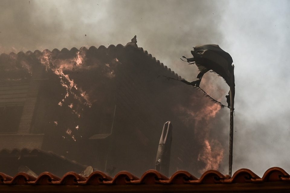 Οι ισχυροί άνεμοι εντάσεως 6-7 μποφόρ, με τις ριπές να φτάνουν στα 8, έχουν επεκτείνει το μέτωπο, με σπίτια στις περιοχές αυτές (Κουβαρά και Λαγονήσι), οι οποίες έχουν εκκενωθεί, να έχουν παραδοθεί στις φλόγες.