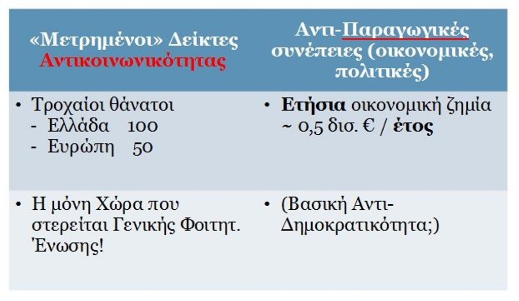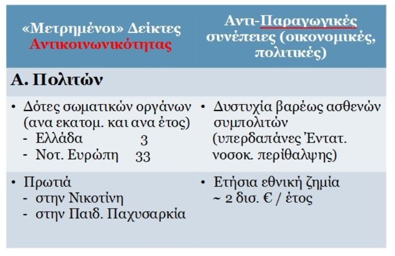 Παραθέτουμε τους σημαντικότερους από τους σχετικούς πίνακες που παρουσίασε ο καθ. κ. Τάσιος: