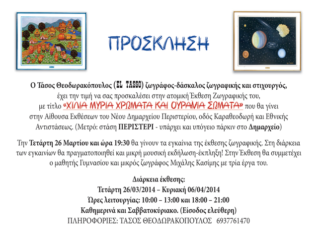 Ατομική έκθεση ζωγραφικής Τάσου Θεοδωρακόπουλου (EL TASSO) στο Περιστέρι