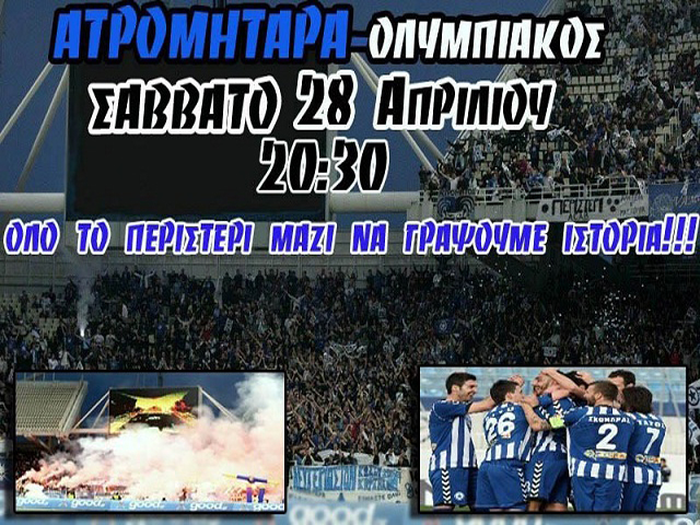 Οι φίλαθλοι της ομάδας μας θα συγκεντρωθούν αύριο το μεσημέρι στην Πλατεία Δημαρχείου και στις 16.00 θα αναχωρήσουν με προορισμό το Ολυμπιακό Στάδιο.