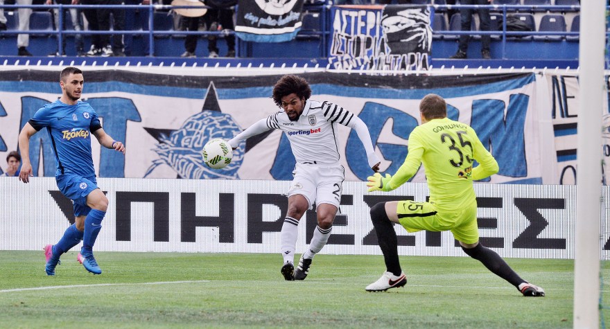 Στο 21′ ο ΠΑΟΚ έχασε διπλή ευκαιρία για το 0-2 με τον Κουλούρη να νικιέται αρχικά από τον Γκορμπούνοφ και ο Λέοβατς στη συνέχεια σημαδεύει το οριζόντιο δοκάρι της εστίας του Λευκορώσου.