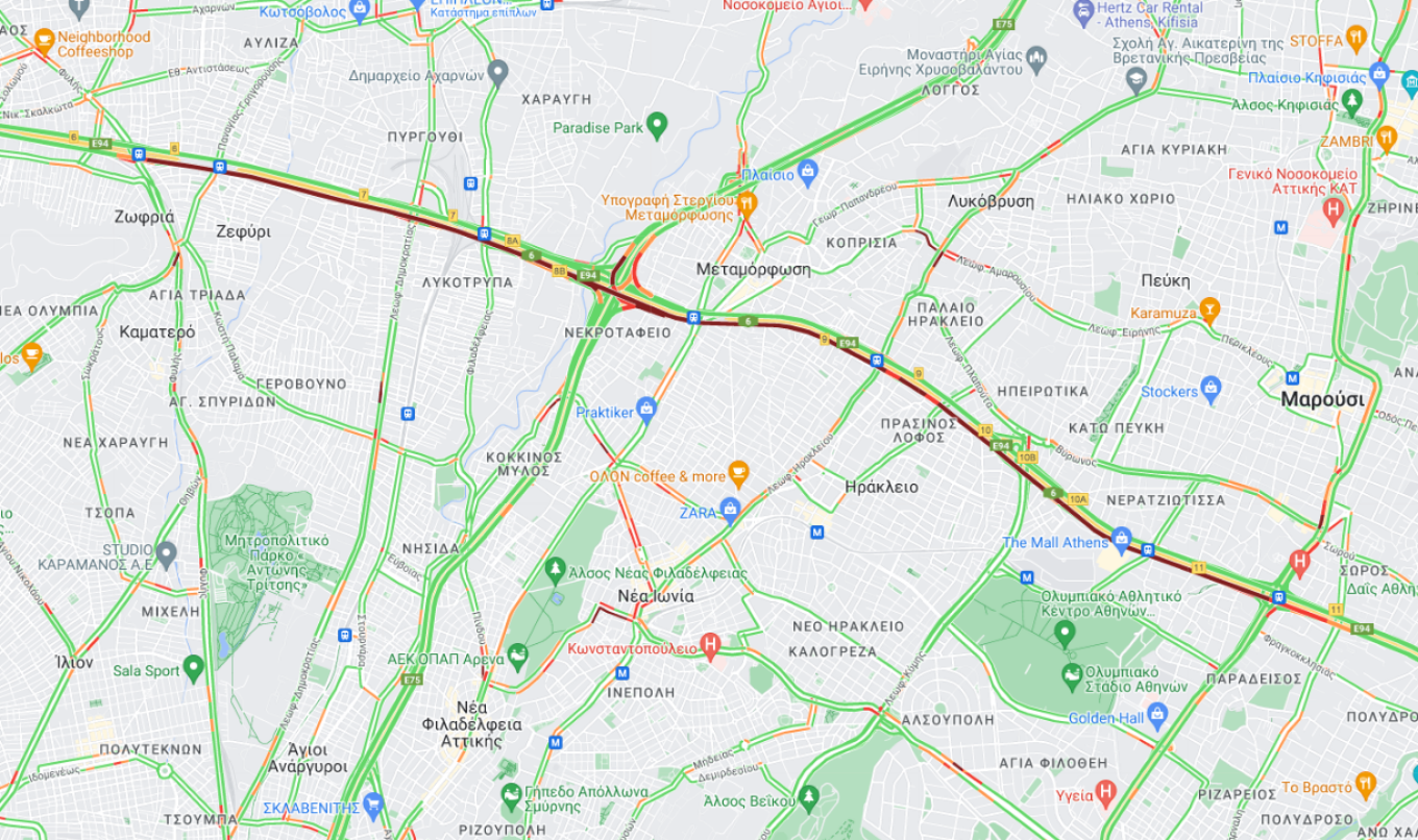 Συγκεκριμένα, παρατηρούνται από νωρίς το πρωί καθυστερήσεις πάνω από 30 λεπτά στο ρεύμα προς Αεροδρόμιο από τον κόμβο Φυλής στο Ζεφύρι μέχρι τον κόμβο Κηφισίας.