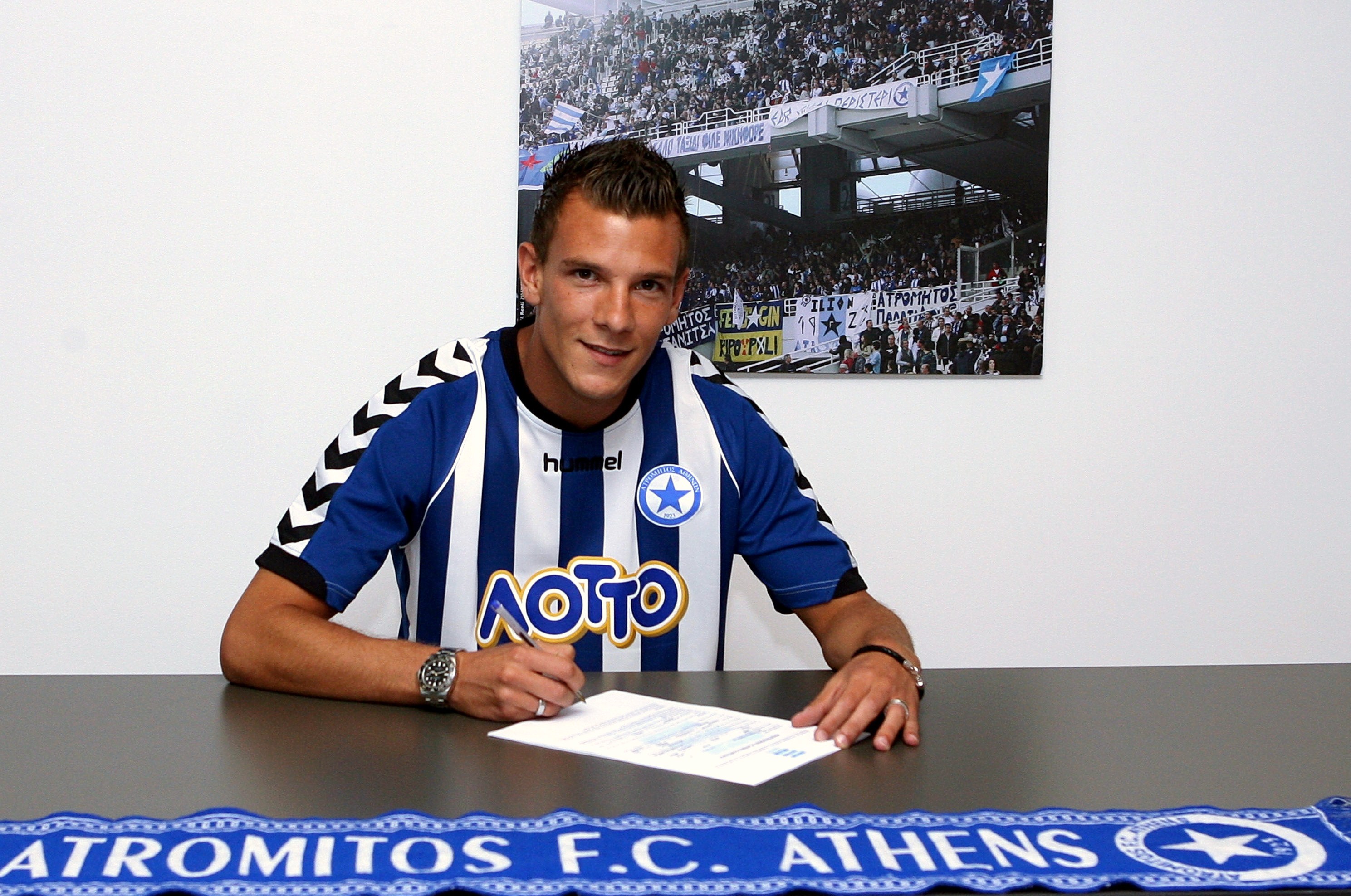 O Γερμανός επιθετικός που έμεινε ελεύθερος από τον Ολυμπιακό, βρέθηκε σήμερα στα γραφεία της ΠΑΕ και υπέγραψε συμβόλαιο διάρκειας τριών ετών παρουσία του Τεχνικού Διευθυντή Γιάννη Αγγελόπουλου ολοκληρώνοντας κατά τον ιδανικότερο τρόπο τον κύκλο επαφών και διαπραγματεύσεων που έγιναν τα τελευταία 24ωρα.