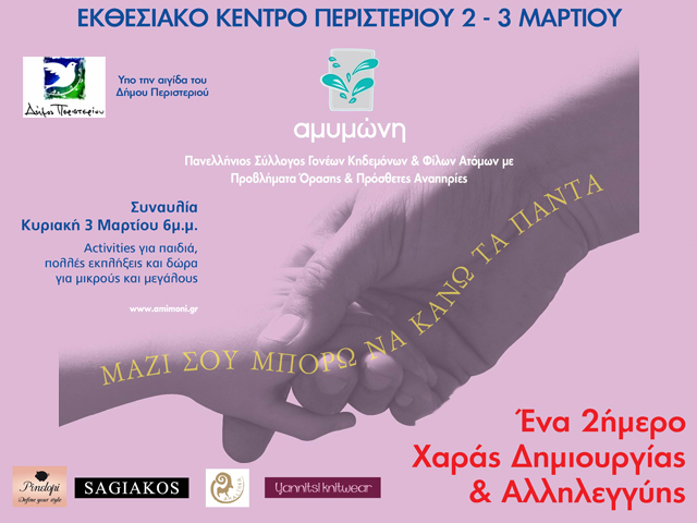 Η εκδήλωση θα πραγματοποιηθεί το Σάββατο και την Κυριακή 2-3 Μαρτίου 2013 στο Εκθεσιακό Κέντρο Περιστερίου, υπό την αιγίδα του Δήμου Περιστερίου και με κεντρικό μήνυμα Μαζί σου μπορώ να κάνω τα πάντα!”.